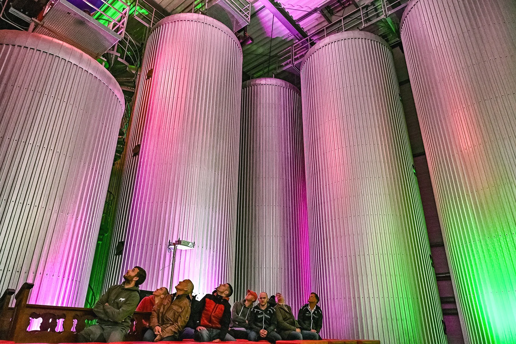Besichtigung der Tanks, in denen das mit „MANN Strom“ gekühlte Bier reift.