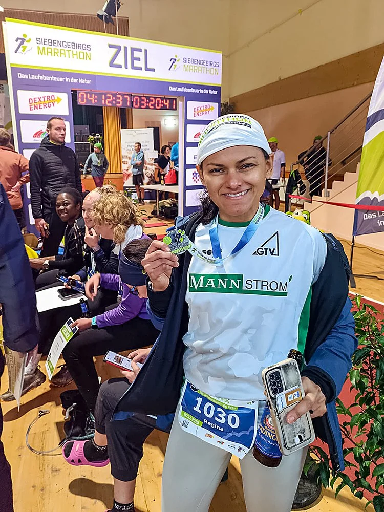 Ohne Blick auf Bestzeiten, aber mit einem Herzen voller Vorweihnachtsmomente erreichte auch Regina das Ziel. 3:37:56 Stunden zeigte die Uhr. Die warme Brühe im Zielbereich, das Klirren der Medaille und das Wiedersehen machten den Tag für die zwei aus der „MANNschaft“ perfekt.