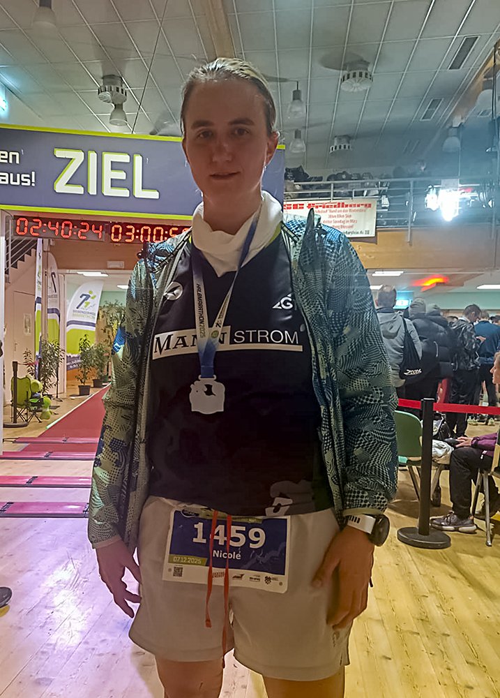 Nicole fand rasch ihren Rhythmus und arbeitete sich souverän über die Höhenmeter. Mit einer ordentlichen Zeit von 2:37:10 h erreichte sie das Ziel – erschöpft, aber strahlend. Ein guter Lauf bei diesen Bedingungen.